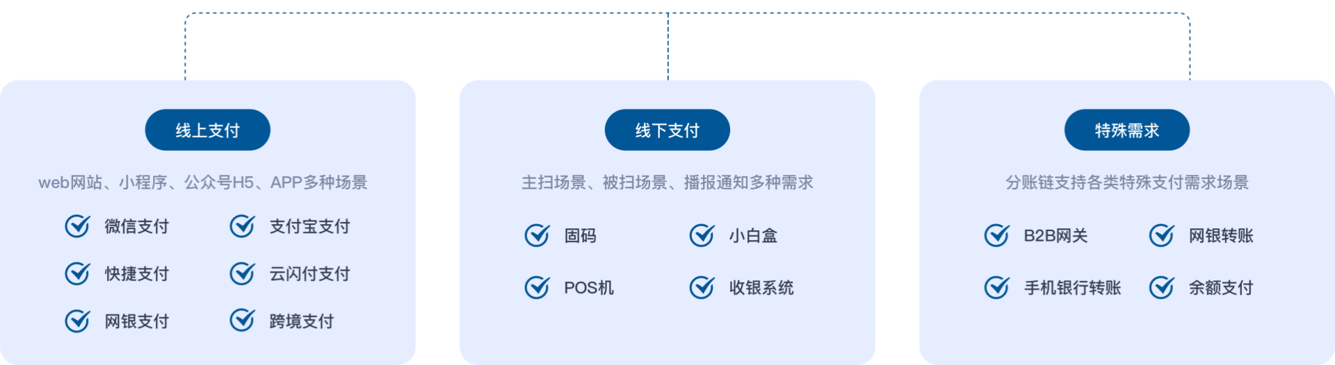 聚合30+支付渠道 ·覆盖线上线下全场景 | 一码聚合微信/支付宝/银联 | 轻量Api对接,一行代码快速打通全通道收款。