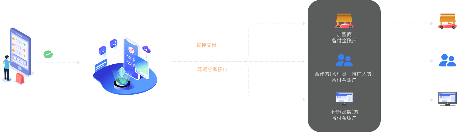 通过统一接口整合多渠道支付能力,适配无人自助服务品牌方平台及设备特性,实现交易全链路无缝衔接,赋能平台高效支付生态